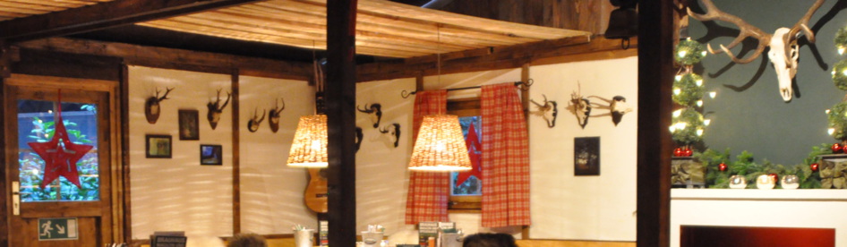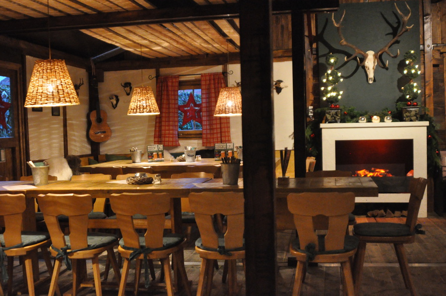 Die sichtbare Balkenkonstruktion im Innern der Hütte ist lediglich zur Dekoration und als